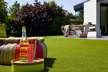 Hardscaping refers to using artificial structures, such as patios, paving, or stony areas, in contrast with natural vegetation and plants. It's possible to lay synthetic grass on top of concrete, decking or stone bases to create an interesting yet ultra-practical outdoor space. By incorporating artificial grass ideas with hardscaping practices, you can create a multi-use area, such as a patio or seating area, which truly stands out and helps to maximise your available space. In addition to being able to fit a dining table, the grassed area can double as a pet play zone or children's area, giving the illusion of openness without sacrificing precious garden space. Outdoor carpet is also water-permeable and perfect for covering outdoor areas where an artificial lawn may not be suitable, such as on decking and around swimming pools or ponds. |